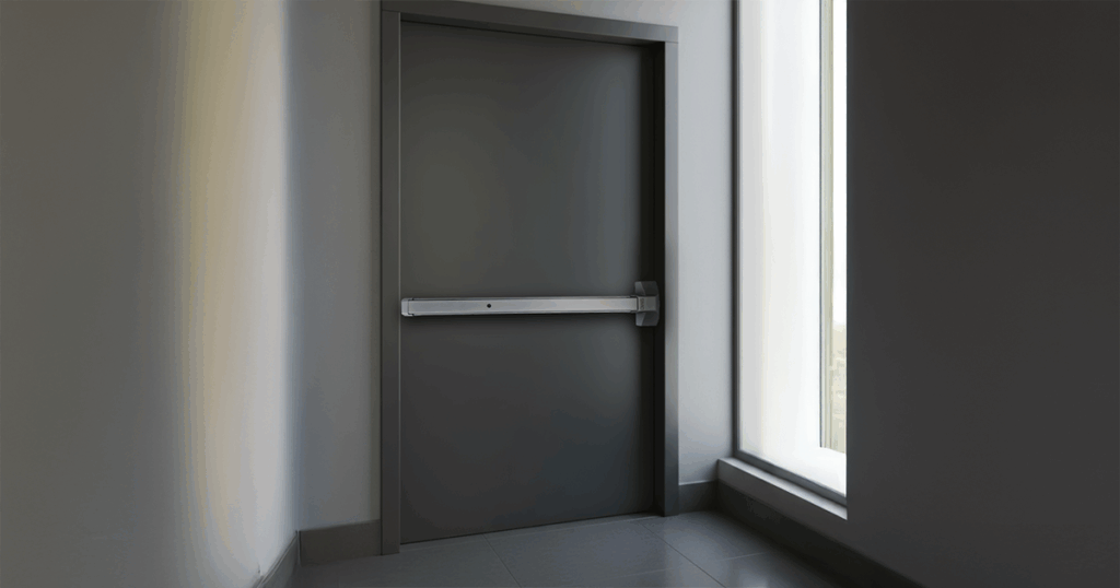 A ABNT NBR 11742:2018 é a norma que estabelece requisitos para portas corta-fogo de uso em saídas de emergência. Entre os pontos principais, ela determina: